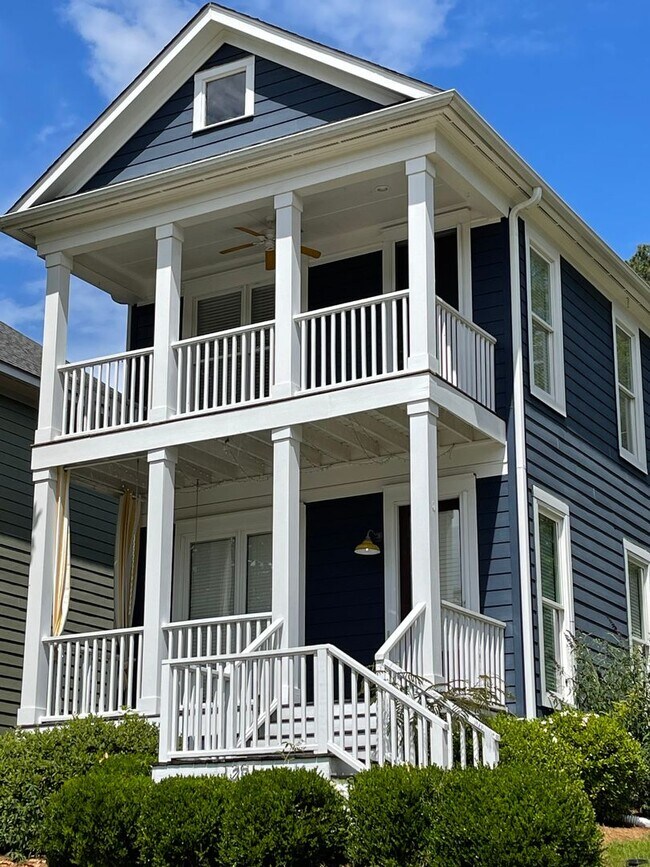 This beautiful Charleston-styled home is bright and airy and has porches galore. Light hardwood floors are throughout the main living area. Kitchen is well appointed with all major appliances and has a precious breakfast nook. Downstairs also includes a half-bath and multiple doors leading to the outdoors. Upstairs has 3 spacious bedrooms. The main bedroom has 2 closets and a ensuite bath with soaking tub. Off the front of the house the main bedroom has a balcony that overlooks the neighborhood. Bedrooms 2 and 3 are large and share a bathroom. Outback is a double car garage and a special "Wine Shed" that has power and air conditioning. Virtual Tour: Zoned for no more than 2 unrelated occupants