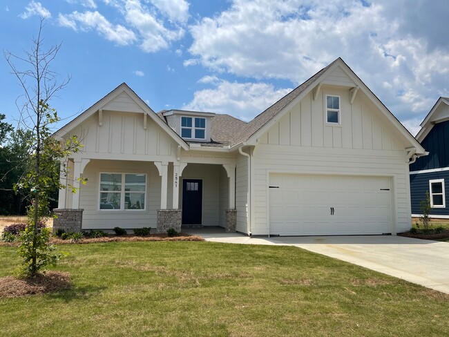 New Construction one level home in Mimms Trail. 3 Bedroom/2 Bathroom split floor plan. Primary suite is located on the back of the home and overlooks the private fenced backyard. 2 additional bedrooms share a full bath located off of the hallway. Formal Dining Room with judges paneling could also be used as an office or playroom and is separate from the open kitchen and great room. Kitchen has a large island and plenty of countertops for a great gathering space. 12 ft. sliders open from the great room onto the covered back porch. Double car garage and huge laundry with washer & dryer included. Enjoy all the neighborhood has to offer; walking trails, fishing ponds, community gardens, clubhouse and pool.