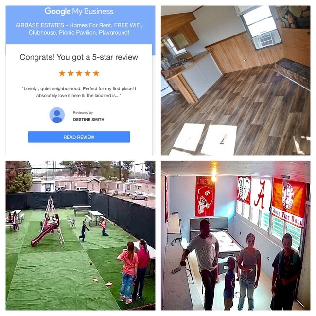 ***MOVE-IN SPECIAL*** 1st Month Rent + Water + Trash ONLY $399 + $500 Deposit = $899 Total to Move-In Today! Bad Credit OK. FREE Park WiFi! Howdy! Are you ready to Rent To Own a mobile home next door to the NEW $90M Montgomery Whitewater!? *Signup today and get our ***$899 May Move in Special*** (covers your Deposit + 1st Month Rent, Water/Trash)! Call Peggy Mon-Sat 9am-5pm to setup a showing at ext 1. *How To Apply* Submit your FREE online rental application here: *Rates* 1 Bed - $425 2 Bed - $475 2 Bed LARGE - $500 3 Bed - $500 Water, Sewer, Trash - $50 Park WiFi - FREE *What's the Office Address* 20 Elcar Cir, Montgomery, AL 36108 The Office is on the middle street in the middle of the park. *8 REASONS TO MOVE TO AIRBASE ESTATES* 1. You get title in 5 years & rent drops to lot rent only of $300 monthly 2. Game Room 3. Picnic Pavilion 4. FREE Park WiFi 5. 24 Hour CCTV Security 6. Online Resident Portal to pay Rent & submit maintenance requests! 7. 3 miles from Downtown Montgomery at the rear entrance of the Maxwell Air force Base! 8. 2 Miles from NEW $90M Whitewater Park & Entertainment District! *What are the 5 REQUIREMENTS TO MOVE TO AIRBASE ESTATES? 1. $1400+ total monthly household income! 2. No Evictions, No Convictions! 3. Bad Credit OK! 4. Pets to be approved by management with a $200 Pet Deposit! 5. A strong reason why you want this opportunity to Rent to Own a home here! We are located 3 miles from Downtown MONTGOMERY and 2 miles from the New $75M Water Park & Entertainment District OPENING SOON! We are the CHEAPEST RENT and BEST VALUE in the Greater Montgomery area GUARANTEED! This is an older park with older homes, so it feels like camp, but come in for a showing and give the inside of the home and the folks that live here a chance to charm you. :)