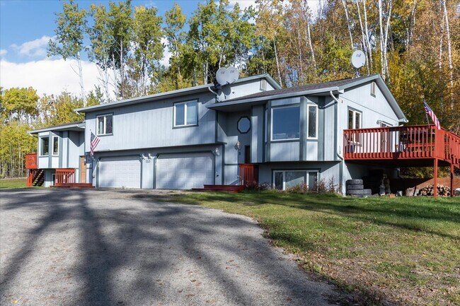 Safe, private, roomy 3 Bedroom 3 bath home. Find yourself enjoying the Alaskan sun on your large deck or from the numerous windows. Open layout featuring two living areas and plenty of space for hosting. The master bedroom includes a walk-in closet as well as a master bathroom. Beyond the large bedroom closets, there is plenty of storage throughout the house as well as a large garage with room for both vehicles and toys. Upstairs living fits two couches, chairs, and TV comfortably. Less than 10 minutes to town including Fred Meyer and Costco as well as a easy commute to Fort Wainwright, Eielson, of UAF. Heating and water included. Electricity, snow removal, trash disposal and lawn maintenance not included. Previous tenants informed management electricity ranged from $150-$200 a month. Dogs: subject to approval (up to 1) No other pets allowed. * currently rented until May 31st. Must complete application to view property. ** Duplex with garage being shared wall. Backyards face away from each other, separate driveways.