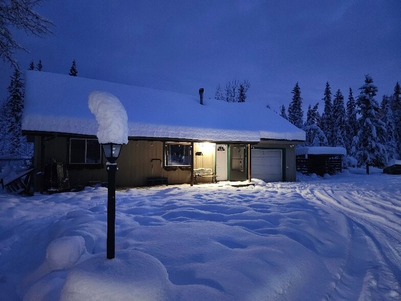 2 bed, 1 bath home on 1 acre. Attached 1 car garage and a detached storage shed, with a drive through driveway and plenty of room to store toys to explore Alaska. Two different heating sources (Heating Oil via Boiler and a Pellet Wood Stove) to keep heating costs down. A fenced in back yard - pets are welcome! Located in North Pole, you are only 15 minutes from either Eileson AFB or Fort Wainwright. Better yet, you are only 1 mile from Chena lake for world class ice fishing or beach access in the summer!