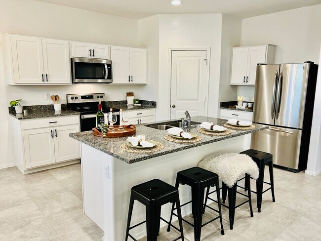 This beautiful wee appointed property spans 1,711 sqft, offering 4 bedrooms and 2 baths in a modern and luxurious design. The home sits on a generous 6,231 sqft lot with driveway space and a spacious 2-car garage. Meticulously maintained by the HOA, the community features green spaces and play areas. Inside, an open floor plan connects a large family room to a well-appointed kitchen with granite countertops, stainless steel appliances, a walk-in pantry, and a breakfast bar for four. A separate dining area adds an elegant touch. The split floor plan ensures privacy, with the primary suite featuring dual sinks, granite countertops, a large walk-in shower, and a huge walk-in closet. Smart home features include the Safe-Haven/ADT system, with a video doorbell, smart lock, thermostat, garage door opener, and smart lighting control. The property boasts 9-foot ceilings, tile floors, and ample natural light. A covered patio facing south provides protection from the elements, overlooking a large private backyard on an elevated lot. Faux-wood blinds, a tile roof, and Ethernet pre-wiring enhance the property's style and functionality. Tenant perks include a furnished laundry room with a brand-new washer and dryer, equipped with a humidity-sensing fan switch. Important reminders include proper maintenance practices, ensuring longevity and optimal performance. In summary, 1131 W. Chimes Tower Drive offers a smart, stylish, and comfortable living space, blending modern amenities with thoughtful design elements. Secure this "Smart Home" for a living experience that prioritizes convenience and sophistication. Home will be leased in "As In" condition. Landscape is included in rent.