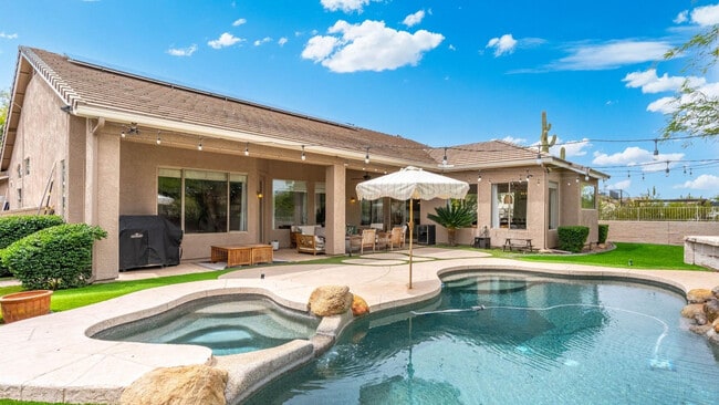 Located in a gated Cave Creek neighborhood with great access to schools,shopping,and dining,this spacious rental offers a split floor plan,flexible living spaces,and resort-style outdoor living. The home includes 3 bedrooms,including a private primary suite,guest ensuite,and separate guest bedroom,plus 2 bonus rooms ideal for an office,media room,gym,or flex space. One bonus room could also serve as additional sleeping space with direct bathroom access. Enjoy mountain views,a saltwater pool and spa,covered patio with misters,in-ground trampoline,Tesla solar,2 EV plug-ins,Nest and Yale smart home features,a Samsung Family Hub refrigerator,R.O. system,and saltless water softener. Pool service included and select furnishings may be negotiated separately. MLS ID 7017083