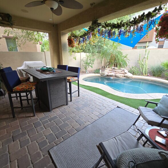 THIS COULD BE YOUR PERFECT HOME OASIS. Available after April 1 with showings beginning March 18, 2026. FULLY FURNISHED with several cookware accessories and it is tastefully decorated. Meticulously cleaned before you move in, too! This is a relaxing and inviting home with a pool, 2-car garage and is in a gated community. INCLUDED - Weekly pool maintenence, pest control service, water softener rental, and utilities including Cox internet, gas, water, sewer and trash. SRP Electric is transferred and paid by tenant. The home has 3 bedrooms and 2 full bathrooms upstairs and a 1/2 bathroom on the main level. It is located just 24 minutes south of PHX Airport and only 3.6 miles from vibrant downtown Chandler. The "community" is conveniently located across the street from Hamilton High School & Aquatics Center, Target, other shopping, restaurants and bars. Ocotillo Golf Club is just 2 miles away. It is a Top 50 Resort by Golf World and has been awarded Golf Digest's 4 1/2 Star Best Places to Play Award. $3,300/mo. with 1 year lease. $3,350mo. with 6 mo. lease. * Minimum 6 month lease term. Refundable security deposit is $2,500. Registered service animals, only, are welcome at no charge.