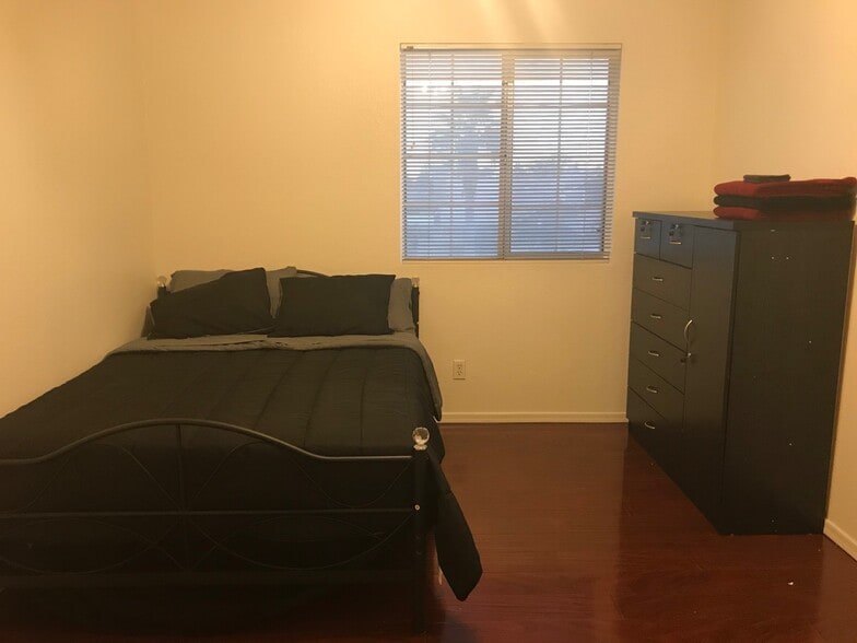 Twin Bedroom - The room is fully furnished with a dresser, closet, and twin bed.