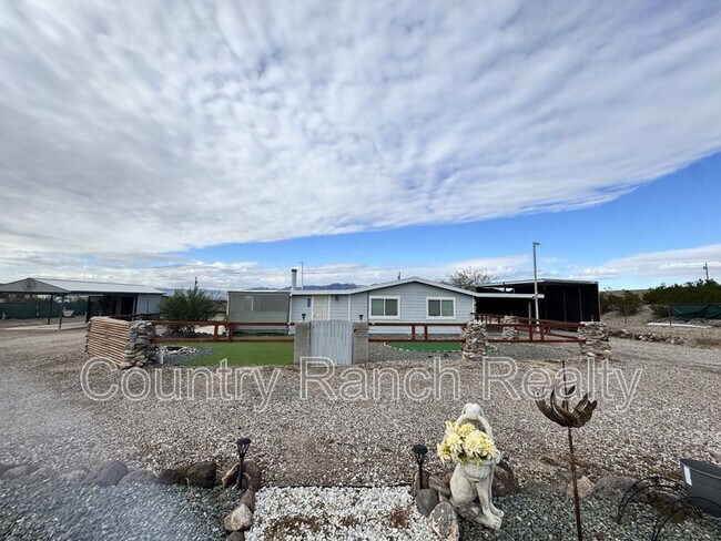 Enjoy space, privacy, and versatility with this charming 2-bedroom, 2-bath main residence plus a separate guest house, all situated on spacious acreage. Perfect for those seeking a rural lifestyle with room to spread out. The main home features a warm, inviting interior with a functional layout, generous living spaces, and comfortable bedrooms. Natural light flows throughout, and thoughtful finishes create a cozy yet practical environment for everyday living. The detached guest house serves as a third bedroom and includes a small kitchenette, making it ideal for extended family, guests, a private office, or additional living space. Outside, the property offers wide-open views and ample outdoor space, perfect for enjoying the desert landscape, animals, toys, or equipment. Additional acreage may be available for rent at an additional cost, offering even more flexibility for those needing extra land.
