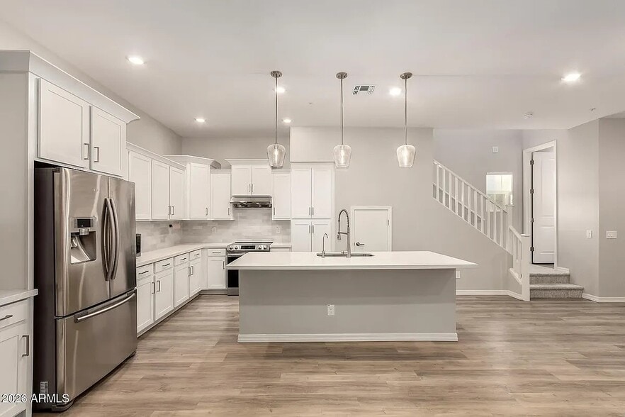 Coveted corner lot home in the intimate Andalucia Villas! Enjoy a great curb appeal, low-maintenance landscaping, pavers, and a community pool. Inside, an open floor plan with tall ceilings, recessed lighting, and wood-look floors flows seamlessly for easy entertaining. The sophisticated white kitchen showcases staggered cabinets, tile backsplash, quartz countertops, SS appliances, and a large island. Powder room on the main level, plush carpet throughout the second floor, and bathrooms in each bedroom are worth mentioning. The large primary suite features an ensuite with a dual vanity. The side patio offers a versatile space for leisure or fun. What's not to like? Close to shops & restaurants, easy access to 202 freeways, and short commute to Santan Village, Downtown Gilbert/Chandler!