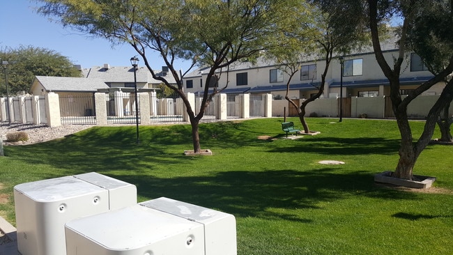 Desirable "Trends 84" neighborhood with lush landscaping, community pool, Jacuzzi, BBQ's and large play areas. Private gated patio/yard. Washer/dryer. SRP. 2-story with living downstairs and bedrooms upstairs. Laminate flooring, new counters and sinks coming soon! Alarm system included (monitoring extra). Perfect for a family or a person needing extra space or a home office. Covered parking right outside. Walking distance to A-rated Apollo High School, Sonic, Fry's and more. Grade schools less than 3/4 mile away. We are making improvements by the day. Don't miss out. This won't last long. Call to view today!