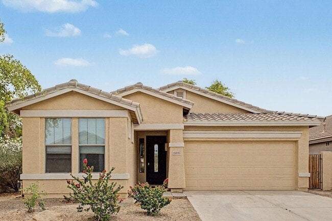 Welcome to an Amazing Home for rent in Goodyears desirable Rio Paseo community. This single-story 4-bedroom, 2-bath home built in 2005 offers 1,790 sqft of functional living space with no interior steps and a desirable open concept layout. Inside, you will find tile flooring, fresh interior paint, 9+ foot ceilings, and abundant natural light that creates a bright and inviting feel throughout. The spacious great room flows seamlessly into the kitchen, making it ideal for everyday living and entertaining. The kitchen features stainless steel appliances, honey oak cabinetry, a pantry, recessed lighting, and a two-tier breakfast bar with an island for additional prep and seating space. The split primary suite provides privacy and includes a full bathroom with a soaking tub, separate shower, double vanity, private toilet room, and a walk-in closet. An open den area adds flexibility for a home office, playroom, or additional living space. Situated on a 7,152 sqft lot with North/South exposure, the backyard offers low-maintenance landscaping, block fencing, and a covered patio perfect for relaxing or entertaining. Additional highlights include a 2-car garage with direct access, washer, dryer, and refrigerator included.
