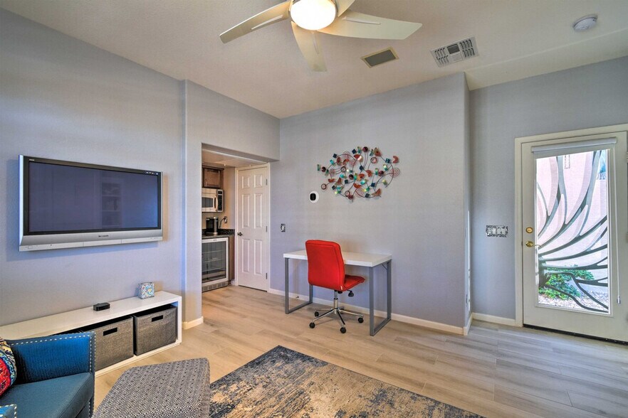The advertised rate of $5,461/month is the lowest available price, based on a 1 month(s) stay with a move-in date of June 16, 2026. Rates vary depending on the duration of stay, season, and other parameters. For exact pricing and additional pricing components, please visit our website and enter your desired move-in and move-out dates. The rate is applicable when billed upfront; it can be higher if billed in multiple payments. Experience the joys of the Sonoran Desert and feel at home in this stunning 2-bedroom, 3-bath vacation rental nestled in the 55+ PebbleCreek resort community! This high-end residence offers a tastefully furnished interior with a dining room, casita, golf cart, and a full kitchen. Enjoy a private fenced-in yard, a covered patio with a gas grill, patio furniture, an outdoor dining area, artificial grass, lush foliage, and a newly installed pool with a waterfall. Inside, you'll find tile and carpet flooring, tall ceilings, natural light, a family room, a living room with an entertainment center, ceiling fans, flat-screen cable TVs, a dining room, and a laundry room with a washer/dryer. The fully equipped kitchen includes cooking basics, a drip and Keurig coffee maker, and spices. A golf cart is available for use. When you're not enjoying the community gym and tennis courts of PebbleCreek, explore White Tank Mountain, enjoy the high-end shops nearby, or head downtown to enjoy Phoenix! This property is located in a 55+ adults-only community. Adults with children are allowed, but they are limited in the number of community amenities they can use. Events, parties, or large gatherings are not allowed. Guests must be at least 55 years old to book. By booking this property, you agree to comply with City of Goodyear Code of Ordinances Article 8-2 (the “Goodyear Ordinance”). Pursuant to the Goodyear Ordinance, this property requires a sex offender background check and you agree to provide any additional information required to confirm your eligibility to make this booking. [SI]