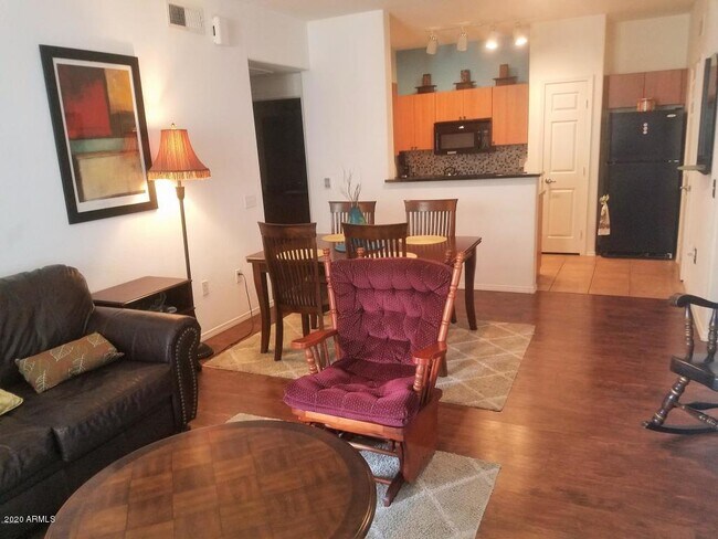 This lovely,upgraded 1 bedroom rental includes shared usage of a 2 car garage. It is on the ground unit and has no stairs or steps. It is only a few feet from the clubhouse,community pool and spa,BBQ area and workout facility. This is a lovely,well maintained gated access community. Nice!