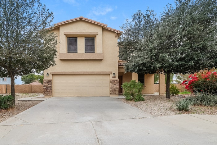 MOVE-IN READY This home is move-in ready. Schedule your tour now or start your application today. Monthly Recurring Fees: $10.95 - Utility Management Situated in a peaceful Maricopa neighborhood, this generous 4-bedroom, 2.5-bath home pairs a fresh interior feel with a spacious two-story layout built for comfortable living. The refreshed paint throughout brightens each space as you step inside, starting with a wide front room that easily adapts to work or dining needs. The open staircase sets the tone for the flow ahead while large windows pull in the Arizona light. Toward the back of the home, the main living area opens into an airy, connected space with sweeping views of the backyard. LVP flooring carries throughout, creating a seamless transition into the updated kitchen. Here, ample cabinetry offers day-to-day convenience, while the new fridge add a clean, functional finish. Direct access to the covered patio keeps indoor-outdoor movement simple and inviting. Upstairs, an impressively spacious main bedroom becomes a calming retreat, enhanced by soft natural light and a wide footprint. The private bathroom features dual sinks, a separate shower, and a soaking tub surrounded by glass block detail. Three additional bedrooms sit nearby, each offering flexibility for guests, work, or creative use. A full hallway bathroom and laundry access keep the upper level practical and organized. Out back, the oversized desert-landscaped yard offers sweeping open space, ideal as a usable finishing point for gatherings, quiet mornings, or future outdoor visions. With its refreshed interior, thoughtful layout, and Maricopa’s conveniences a short drive away, this home delivers indoor comfort paired with wide-open outdoor living. Apply now! *Maymont Homes provides residents with convenient solutions, including simplified utility billing and flexible rent payment options. Contact us for more details. This information is deemed reliable, but not guaranteed. All measurements are approximate. Actual product and home specifications may vary in dimension or detail. Images are for representational purposes only. Some programs and services may not be available in all market areas. Prices and availability are subject to change without notice. Advertised rent prices do not include the required application fee, the partially refundable reservation fee (due upon application approval), or the mandatory monthly utility management fee (in select market areas.) Residents must maintain renters insurance as specified in their lease. If third-party renters insurance is not provided, residents will be automatically enrolled in our Master Insurance Policy for a fee. Select homes may be located in communities that require a monthly fee for community-specific amenities or services. For complete details, please contact a company leasing representative. Equal Housing Opportunity. This property is subject to homeowners' association (HOA) governance; restrictions and covenants may apply. Estimated availability date is subject to change based on construction timelines and move-out confirmation. This property allows self guided viewing without an appointment. Contact for details.