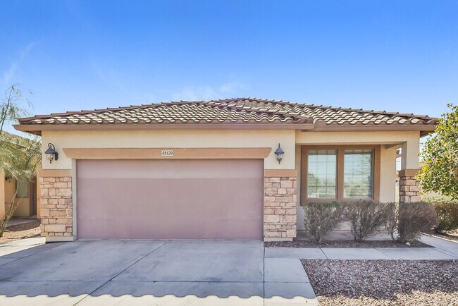 Please note, our homes are available on a first-come, first-serve basis and are not reserved until the lease is signed by all applicants and security deposits are collected. This home features Progress Smart Home - Progress Residential's smart home app, which allows you to control the home securely from any of your devices. Learn more at Apply to lease this home by June 17, 2025 and receive $1000. Want to tour on your own? Click the “Self Tour” button on this home’s listing or call to register for a self-guided showing at a time that works best for you. Put this pet-friendly Maricopa rental home with an open floor plan on your short list! It has three bedrooms, two baths, and a two-car attached garage, and everything is on one floor. The living room features lovely vinyl plank flooring plus a lighted ceiling fan and a huge alcove for your entertainment center. In the kitchen, you'll enjoy upgraded stainless-steel appliances and warm white cabinetry. There's plenty of storage in the kitchen island and pantry. Elegant quartz countertops tie the room together. The primary bedroom offers high ceilings and a lighted ceiling fan. You'll appreciate the dual vanity sinks and walk-in closet in the en suite bath. The fenced backyard includes a partially covered patio. Call for a tour today.