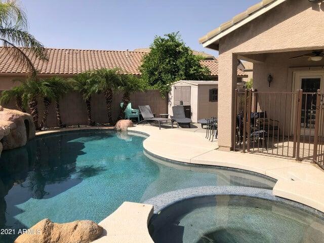Opportunities like this are raredont miss your chance to make this stunning 3-bedroom,2-bath home with a pool your own! Nestled on a private north/south-facing lot in a gated community,this move-in ready property has been beautifully updated inside and out. Recent upgrades include fresh interior and exterior paint,refinished cabinets throughout,new carpet in the bedrooms,and a brand-new refrigerator. The spacious eat-in kitchen features a charming bay window,granite countertops,and a convenient breakfast barperfect for everyday living and entertaining. Both the primary and guest bathrooms are equipped with stylish double vanities for added comfort. Step outside to an incredible backyard designed for relaxation and fun,complete with a fenced pool,a large rock waterslide,waterfall,heated spa,covered patio,and an RV gate with a concrete slab. Ideally located just off the I-60 freeway,this home offers easy access to everything the Valley has to offer. MLS ID 7015564