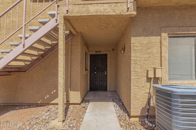 871 SQ FT! 2 bedroom, 2 bath apartment unit in Mesa's Brookside community! Nicely updated interior with desirable features throughout. Single story floor plan! Charming eat-in kitchen with included appliances, & breakfast bar. Open living/dining with sliding door patio access! Neutral interior with tile flooring throughout. This unit offers 2 generously sized bedrooms, each with ample closet space! Primary suite with full bath. Blinds + ceiling fans! In unit washer/dryer. Enjoy a private patio, storage space, & assigned parking! Desirable ground floor unit with N/S exposure. Brookside is a well maintained community with community pool + spa, & nearby transportation services!