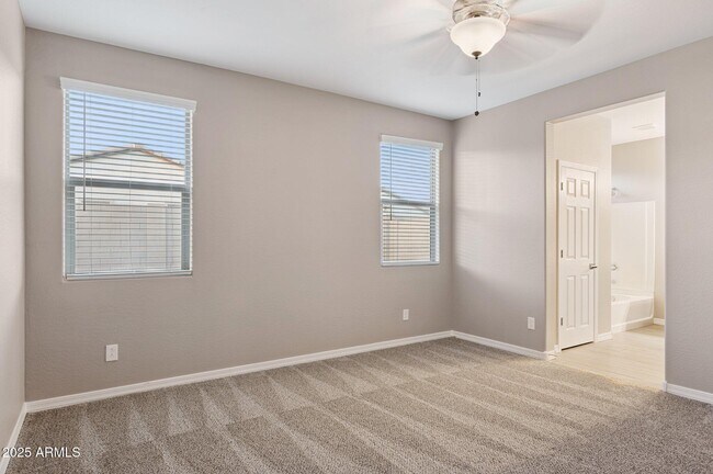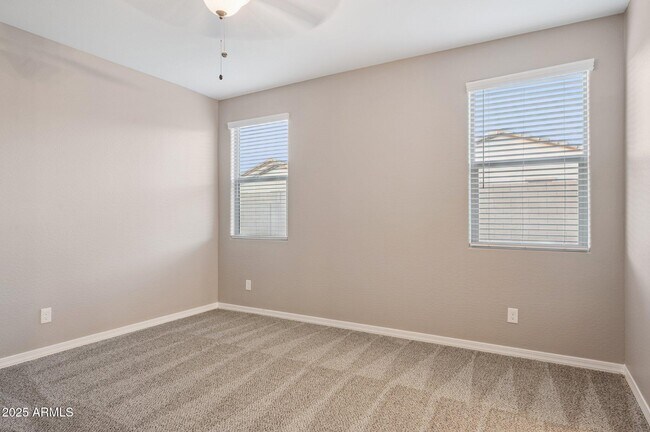 Extraordinarily clean,3bed / 2bath PLUS Den / Office,single level home w/ N/S exposure,is a first time rental & is available now! All new paint & new carpets just completed. Desert landscaping welcomes you out front- enter to tile floors in common areas,including den / office right up front. Kitchen features upgraded cabinets,granite counters,SS appliances,including gas range & large walk in pantry. Split primary Br at back of home,w/ dual vanities & walk in closet. 2 more guest bedrooms,one w/ walk in closet,centered around guest bath & laundry room w/ Samsung units included. Easy,low maintenance turf back yard. Incredible location is near huge community pool & playground area. Super quick access to US60 & Loop202,shopping,dining,entertainment & more! Pics are gorgeous!