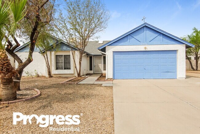 Want to tour on your own? Click the “Show Yourself In” button on this home’s listing or call to register for a self-guided showing at a time that works best for you. This home features Progress Smart Home - Progress Residential’s smart home app, which allows you to control the home securely from any of your devices. Learn more at Mature trees surround this three-bedroom, two-bathroom rental home in Peoria. Take advantage of the expansive concrete patio in the fenced-in backyard. Vaulted ceilings and vinyl plank flooring add a stylish touch to the living room. In the winter, bask in the glow of the wood-burning fireplace. Invite friends for dinner in the formal dining room, which offers a frosted-glass-and-brass chandelier and a window with a view of the spacious backyard. Preparing meals is easy thanks to the kitchen's stainless-steel appliances and pantry. Plush neutral carpeting and fresh paint add a sense of serenity to the master bedroom. Its private bathroom includes an oversized vanity and a walk-in, glass-enclosed shower. Apply to move into this rental home today.