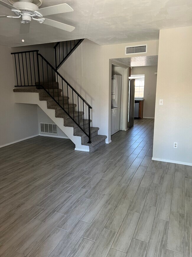Move in ready - assigned covered parking space in front of unit - stackable washer dryer in unit