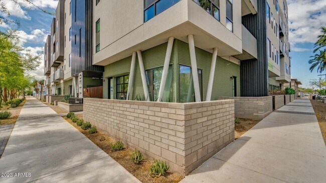 Located one block from Roosevelt Row in Downtown Phoenix. This spacious and efficient Live/Work, One Bed plus Studio/Office is located on the first floor of en Hance Park Condominiums at 2nd St & Moreland and can be used as a residence with an office, a two bedroom condo or an office with separate workspaces. Garage door entrance opens to patio with great views of the active street. Polished concrete floors. Upgraded kitchen with quartz counters and stainless appliances. Oversized shower with contemporary tile surround,14' ceilings, concrete walls, floor and ceiling offering great sound abatement. Community amenities included secured entrance and parking, heated pool and bike storage. Located across from Margaret T. Hance Park, offering an excellent walkable location! Tenant pays electric.