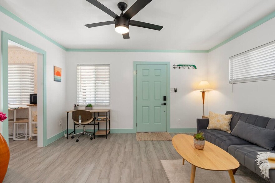 This exceptional one-bedroom retreat in Downtown Phoenix is ideal for both business travelers and couples seeking a secluded escape. Situated within a private, gated property, it offers stylish appointments and a magnificent backyard. Imagine relaxing under the pergola beside a cozy fire with your favorite beverage or enjoying outdoor games in the spacious yard. Upon stepping into the property, you will immediately encounter vibrant colors and inviting decor at this home. Every detail of this home has been carefully curated for your enjoyment, with thoughtful consideration into each element. This one-bedroom casita features a spacious living room, a desk with a monitor, and a fully equipped kitchen complete with an in-unit washer and dryer. Dogs and cats are allowed with approval and a pet fee. Please ensure you are cleaning up after your pets, as additional fines may occur for excessive clean-up. This home is located in the historic Garfield neighborhood. It is centrally located to everything the valley has to offer, just minutes to Scottsdale, Glendale, and more. It is also 8 minutes from the airport. Downtown, less than a mile away, is the Phoenix convention center, Phoenix children's museum, Symphony hall, and the Arizona science center. Enjoy a bustling nightlife, including catching a baseball game at Chase field or some basketball at the Footprint center. Guests have access to the entire property within the gated area. Do not park in the parking lot next to the gate. The fire pit is propane, please shut it off when not in use and notify your host when it is getting low. The gate must be shut after arrival and departure. No additional guests other than the ones staying are allowed without prior arrangement, violating this will incur a $200 charge per person per day and possible cancellation of your booking. Any excessive cleaning required is $50 per hour. Tampering with security equipment is grounds for immediate cancellation of the booking. No smoking, vaping, or drug use is allowed, with a $500 fine for violations. No parties are allowed, and if a party occurs, you will be asked to leave with no refund. If there are any noise complaints or the police are called, you could be asked to leave with no refund. Late checkouts can be arranged for an additional $100 fee and must be requested 24-48 hours in advance. A $150 charge applies to guests still on the property after check-out time. Cleaning crew will enter the home at 11 AM to clean. Anyone still in the house two hours after checkout will then pay that day's base rate. If we have to refund another guest due to you staying in the property, you will reimburse us for any refunds given. Any damage resulting in blocking days off in the calendar will result in you paying the day's rate for however many days it took to restore the property. Be respectful of the neighbors. Includes a desk with a monitor. A laptop computer is not included. Registration Number: STR-2024-005350 [SI]