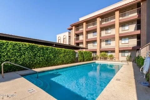 2 Bedroom / 1 Bath. New paint and floors. Desired first floor near the pool and hot tub. The community is gated and features a pool and hot tub. The unit includes an assigned covered parking space, The Central Ave Canal and Trail border the community and the local businesses are all within walking distance. Small pets under 35 pounds considered.