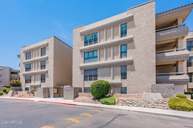 ELEVATOR ACCESS! Short or Long term rental. ALSO AVAILABLE FOR SALE! Charming,updated and FULLY FURNISHED! This 2 BR/1.5 condo is light,bright and truly turn key. Great location on the property with views of the golf course and in close proximity to the pool. The covered patio allows for indoor/outdoor living! Spacious bedrooms,ample storage and updated kitchen. The complex is in close proximity to the Biltmore shopping area with many restaurants and hiking trails nearby. Seller just installed a pocket door in hall bathroom for easy access to shower area. In addition,new carpeting installed in both bedrooms. Welcome Home!