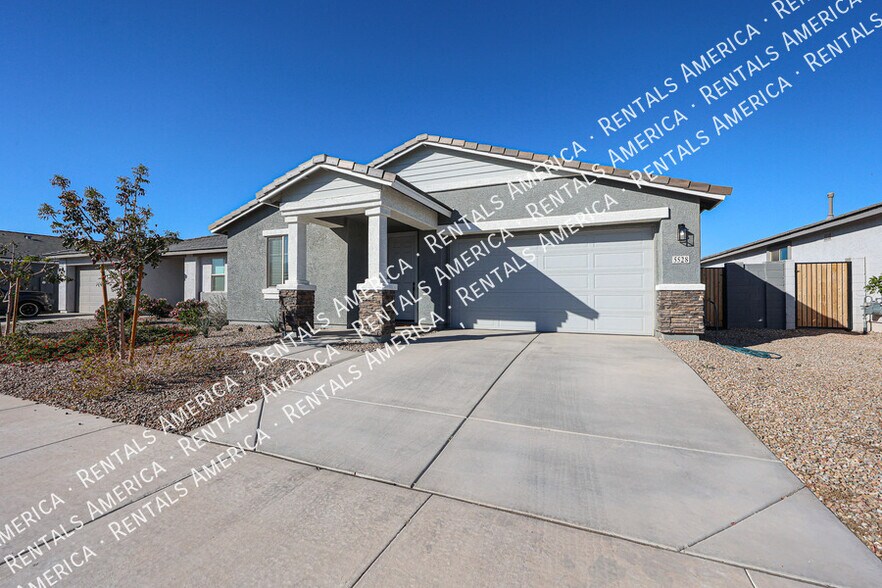 Welcome to the up-and-coming Estrella Crossings community, centrally located in the Phoenix area. This modern 3-bedroom, 2-bath home offers 1,579 sq ft of stylish living space with 9-ft ceilings throughout. Enjoy wood-look tile flooring, plush carpeted bedrooms, and a beautifully designed kitchen featuring two-tone white and gray cabinetry, quartz countertops, a farmhouse sink, and all appliances included, including refrigerator and laundry. The flexible layout is ideal for both everyday living and entertaining. Close to everything Phoenix has to offer, with community parks, walking paths, and more. One Time Admin Fee: $300, Pet Deposit: $300/pet (if applicable), Service Fee: 2%. $39/month Resident Benefits Package, Helping Heroes Discount Available! Cats Allowed Dogs Allowed Dryer Pets Allowed Washer