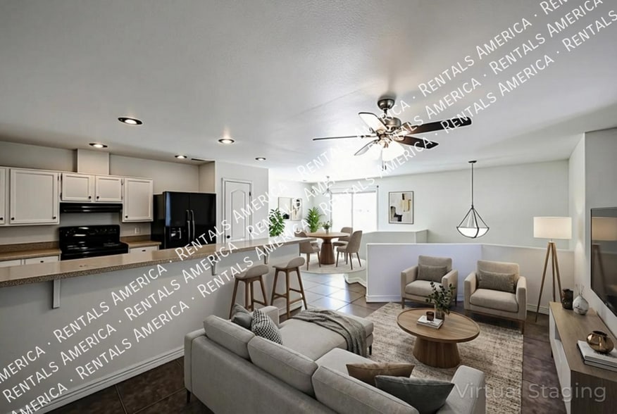 This beautiful home offers a split floor plan with 4 bedrooms, 2 bathrooms with tile flooring throughout, carpet on the stairs. Kitchen offers black appliances and pantry with lots of storage space. House sits on a cul de sack lot with an RV gate and easy to maintain landscape. This home is a must see! One Time Admin Fee: $300, Pet Deposit: $300/pet (if applicable), Service Fee 2%. $39/month Resident Benefits Package, Helping Heroes Discount Available! Carpet Ceramic Tile Disposal Dryer Garage Pets Allowed Washer