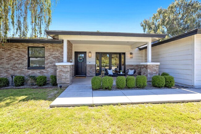 Beautifully furnished and updated Arcadia Lite home now available for rent! Minimum term is twelve months. Also available unfurnished at $7000/month. Four bedrooms, four baths with huge yard and large pool. Two car garage on a quiet non-through street. Large great room plus den or family room and very spacious primary suite with large bath plus huge walk-in closet. Second bedroom has ensuite bath as well. Large laundry room with washer/dryer. Big front porch with north view! Perfect summer getaway with cool pool just off the expansive rear patio! Includes pool and lawn care. Power, gas, and cable paid by tenant.