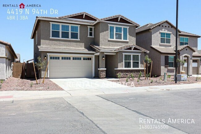 ---- SCHEDULE A SHOWING ONLINE AT: ---- Be the first to live in this beautiful brand new 4 bedroom, 3 bath home! Located in the Western Enclave gated-community, this home features an open concept kitchen to living roomgranting exceptional space for relaxing or entertaining family and friends. The kitchen features stainless steel appliances and a large island. Primary ensuite bedroom includes a walk-in glass shower, dual sinks, and a spacious walk-in closet. Two secondary bedrooms are located upstairs with one downstairs, and all are equipped with closets. The home also has a huge loft as the center hub of upstairs. Other highlights of the home include a brand new water softener and washer/dryer are included. This is a smart technology home equipped with Ring Home Security, Smart Garage Door Opener, Smart Main Door lock and more. An upcoming renovation project for the backyard landscaping will feature beautiful green turf, gravel, and pavers throughout! Prime location in Phoenix that allows quick access to the Loop 101, nearby shopping, dining, and entertainment. Grab this new home before its gone!One Time Admin Fee: $300, Pet Deposit: $300/pet (if applicable), Municipal Tax & Service Fee Total 4.3%. $29/month Resident Benefits Package, Helping Heroes Discount Available! Dryer Garage Washing Machine