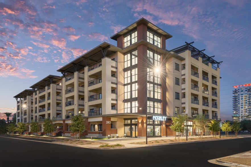 Live in the center of it all at The McKinley in Roosevelt Row, Downtown Phoenix. Our thoughtfully designed studio, one, and two-bedroom apartments offer modern finishes, open layouts, and floor-to-ceiling windows that showcase the energy of the city. Steps from local art galleries, coffee shops, dining, and nightlife, The McKinley places you in one of Phoenix's most dynamic neighborhoods. Enjoy resort-style amenities, including a rooftop deck, pool, fitness center, and pet-friendly community spaces - all designed to elevate your urban lifestyle.