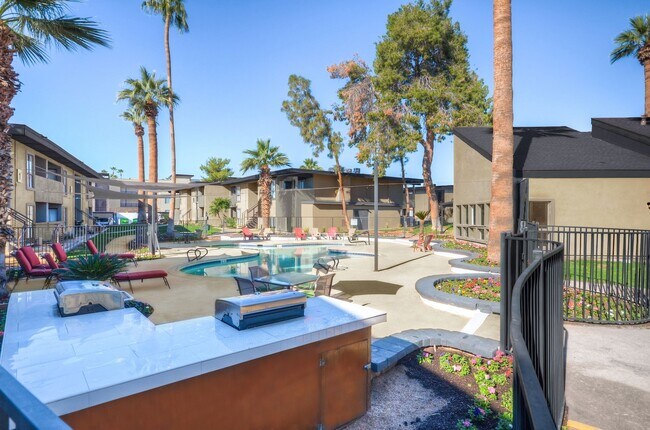 All utilities included ready to move in - The Vue On Camelback is located on 15th Avenue and Camelback. Our well-lit community is conveniently located near shopping centers, restaurants, entertainment and easy access to the light rail. Our comfortable newly renovated apartments include ceiling fans, new hardwood vinyl flooring, grey accent paint, and a peaceful privet patio view.