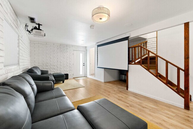 Feel at home in this 5-bedroom, 3-bathroom mid-century modern home in Prescott, perfect for up to 12 guests. Perched on a private half-acre, this home offers nearly 360-degree views of historic downtown Prescott. This home is equipped with expansive windows offering stunning mountain views, a hot tub, a fire pit, a home gym, a movie theater, an outdoor patio/dining area, a barbecue grill, and high-speed Wi-Fi. The fully stocked chef’s kitchen features high-end stainless appliances, ample cabinetry, and a large island with high seating. The lower level includes a kitchenette with a mini fridge, coffee maker, dishes, and utensils. Enjoy the living room with a smart flat-screen TV and a large plush sofa, or the movie room with two plush sofas, a projector, and a movie screen, as well as a mini fridge and microwave. Outdoor amenities include corn hole, giant connect 4, and ample outdoor seating. Up to 2 dogs are allowed for a fee of $125 per stay. Walk to Dignity Health, schools, and shopping, and enjoy easy access to downtown Prescott, Whiskey Row, lakes, and trails. Nearby attractions include The Courthouse Square Plaza (~2.5 miles), Watson Lake Park (~3.5 miles), Willow Lake (~4 miles), Thumb Butte (~6–7 miles), Heritage Park Zoological Sanctuary (~4 miles), and Goldwater Lake (~5 miles). Explore restaurants like El Gato Azul (~3.2 miles), Farm Provisions (~3.1 miles), Bistro St. Michael (~3 miles), The Palace Restaurant & Saloon (~3 miles), and Raven Cafe (~3 miles). No parties or events are allowed, and violations may result in immediate termination of the stay. An exterior camera is installed solely to monitor the cleaning team for quality and security purposes. Parking is available for 2 vehicles in the driveway and an additional 6 cars in the lower lot; street parking is not allowed. Guests must be 25 years or older to book this property. Check-in is at 4pm and check-out is at 10am. We kindly ask that you keep your dog off of the furniture, that your dog is crate trained, and that you pick up after them. Bedroom 3 includes a dedicated workspace. Registration Number: STR Permit: VR25-007 | TPT: 21573658 [SI]