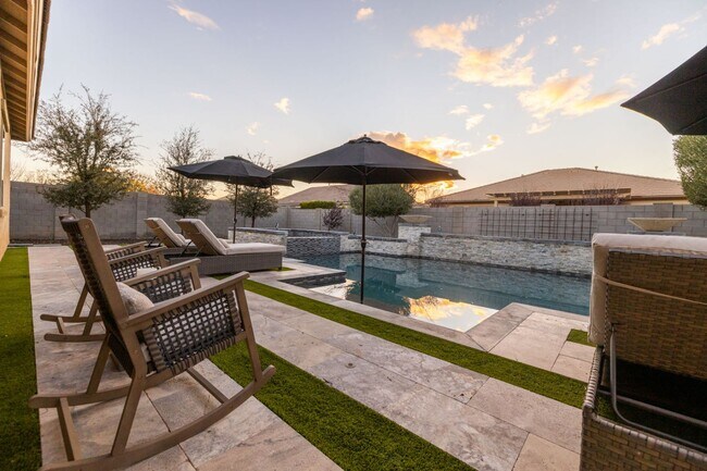 Enjoy true Southwest outdoor living in this stunning Queen Creek residence, offering luxury monthly stays for families during spring training, executive relocations, or anyone looking to take a bite out of life in Arizona. Close to shopping, restaurants, hiking, golf courses, Spring Training and more this beautiful 5 bedroom, 3 bath home, offers the perfect setting to enjoy a relaxing escape. A covered patio dining area, outdoor kitchen with TV, BBQ, and several seating areas. The private complimentary heated pool, hot tub, and luxury lounge chairs are just perfect for relaxing and enjoying the warm Arizona sun. From here, enjoy a myriad of outdoor hiking adventures, catch a Spring Training Baseball game, attend the Phoenix Open, or try your luck at nearby Casinos. There's nothing to think about, this home checks all the boxes for an unforgettable stay and lifelong memories.
