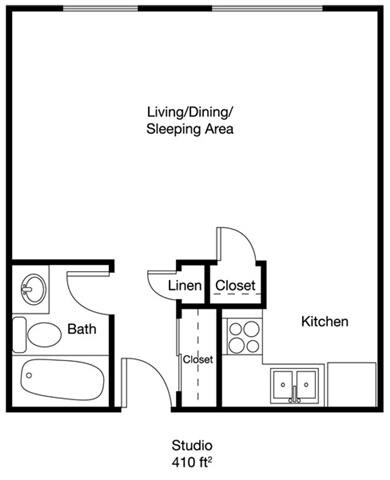 Studio, 1 Bath