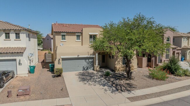 Rancho Sahuarita! The 1576 SF two story home features 3 Beds and 2.5 baths with a den/office on the lower level! Tile and Carpet! 2 car garage with some shelving for storage. Spacious primary suite with big walk in closet and dual sinks, walk in shower! Junior suite on second level as well with its own private bathroom! Laundry conveniently located on second floor with washer and dryer included and lots of cabinet storage.! Tile on ground floor! Great room features 20 foot ceilings! Nice sized kitchen features upgraded toffee maple cabinets with pullouts and pantry. A movable island with chairs are provided for extra area for dining or food prepping. Extended paver patio in backyard for those outdoor family gatherings or just relaxing! Doggie Door leading to back yard. Community has all the amenities you could imagine including clubhouse, waterpark, lake, pools and more. Dogs OK with owner approval! NO CATS please. 3D TOUR: Interested in this property, contact Chris Apply on Qualifications Required: No Evictions Credit Score 600 or above Applicant must make 3X the rent If student, student must provide a guarantor Account setup fee $400.00 2 years of residential history (does not apply to students) Valid form of identification Pet Fee $500.00 per each pet, NON-REFUNDABLE Residents 18 or older must submit an application Application fees $65, no refunds, NO EXCEPTIONS! Monthly Admin Fee $25.00