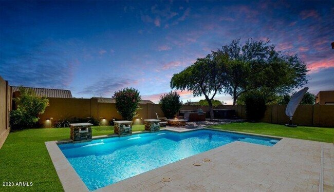Located in the desirable gated community at McDowell Mountain Ranch. This beautiful fully furnished 3 bedroom + 1 Office/den, 2 bathroom home is available for lease May through December 2021. Complete with high end finishes, stainless steel appliances, granite counter tops and plenty of open living space. Resort style backyard includes covered patio, pool, Jacuzzi hot tub, fire pit, built in BBQ, putting green and much more.Lease includes pool, spa, pest, landscape and yard service. Call to schedule your private showing.