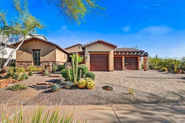Exceptional Long-Term Rental in DC Ranch. Discover a rare opportunity to lease this beautifully Maracay home on a premium private lot?no neighbors on one side and some of the best views in the community. The chef's kitchen is a dream, showcasing a 48-inch gas cooktop with 6 burners and griddle, double ovens, a spacious island, and elegant finishes. The open great room impresses with soaring beamed ceilings, a striking stone fireplace, and a seamless flow into the light-filled eat-in kitchen and formal dining room, which opens to a charming private courtyard. Step through double French doors to your own backyard retreat?designed for both relaxation and entertaining. Enjoy sweeping views, complete privacy, and resort-style amenities including a Pebble Tec pool and spa