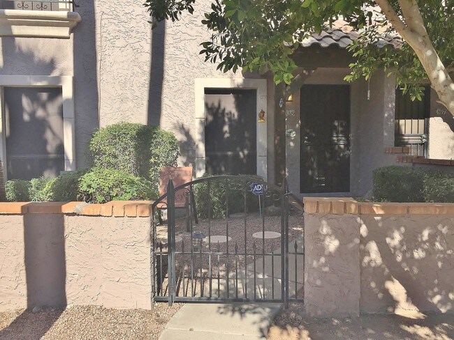 Fully Furnished Vacation Rental! 2-bedroom/2.5 bath rental at lovely Rancho Vista Townhomes!PRIME SCOTTSDALE LOCATION! Lives more like a single family home. Very private end unit next to lush common area. WALK to Old Town, Fashion Square, premier dining & entertainment. Relax & enjoy perfect weather in your own front yard or covered back patio complete with BBQ & fire place. Updated & upgraded unit. Remodeled kitchen has beautiful granite counters. All baths have corian vanities & travertine flooring. Beautiful wood downstairs with ample seating, formal dining & half bath. Dual master suites upstairs. This feels like home & is beautifully decorated in Southwestern design.