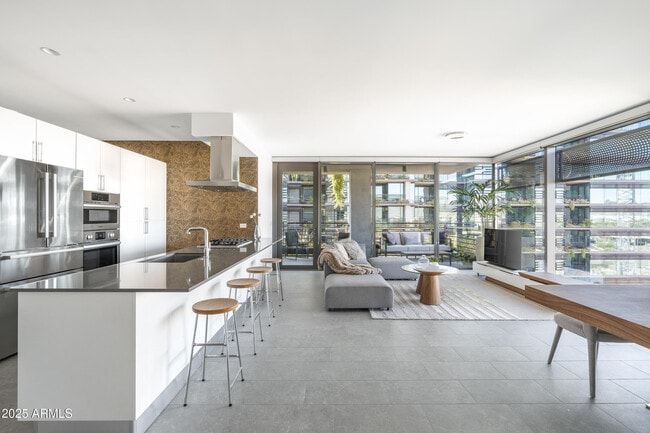 Experience luxurious sky-high living at Optima Kierland. This prestigious 7th-floor fully furnished corner residence within the renowned Optima Kierland community boasts 1,758 square feet of upscale living,a paragon of Scottsdale luxury,blending high-end furnishings with breathtaking views and world-class amenities. This Residence offers elevated comfort as it comes fully furnished with sophisticated decor,providing a seamless move-in experience. Floor-to-ceiling windows illuminate the space,showcasing Arizona's famed natural light. The functional floor plan situates the primary bedroom away from the two guest bedrooms separated by the living area,modern kitchen,and stunning dining room. The oversized laundry room has generous storage options and is pulled away from the bedrooms. The primary suite allows you to wake up to stunning views,complete with plush bedding,an ensuite bath and a massive walk in closet for a truly serene experience. Walk out to the private balcony through the living room or the third bedroom to enjoy the cascading landscaping and unique architecture. The exclusive amenities in this unit include two garage parking spaces; one featuring an EV charger. The home is fully stocked from your practical and elegant everyday furniture down to your silverware. The Optima Kierland allows for an active lifestyle with amenities such as a large workout room,sports courts for basketball,racketball,pickle ball,a golf simulator,bocce ball,gaming room,and dog park for your furry friends. And we haven't even gotten to the rooftop perks yet! Immerse yourself in the rooftop pool,where lounge areas offer a perfect escape amidst views of the McDowell Mountain Preserve. Enjoy the outdoor kitchen or lounge and entertaining spaces. Care for your mind and body with access to both a hot tub,cold plunge and rooftop fire pits to unwind at while enjoying the desert at sunset. Situated across the street from Kierland Commons and Scottsdale Quarter,enjoy immediate access to shopping,gourmet dining,and entertainment. Minutes from Scottsdale Airport,your getaways are as effortless as your day-to-day living. This unit features inclusive fees as all HOA fees are included in your rent,covering essentials such as water,sewer,trash,basic cable,and internet services for a worry-free move-in. Unit 707 is not just a residence; it's a lifestyle choice for those who value luxury,convenience,and the allure of Scottsdale living. Whether you're indulging in the Optima Kierland amenities or exploring the vibrant locale,this fully furnished condo offers an unparalleled rental opportunity. Step into the epitome of Scottsdale elegance. Your exceptional Optima Kierland home awaits.