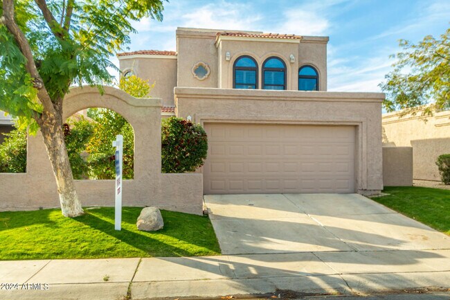 Gorgeous move-in-ready home in the sought-after McCormick Ranch community. Community pool and spa with bathrooms. This is a premiere Scottsdale location and this home is uniquely spacious - with 4 bedrooms and 2.5 baths - while offering a low-maintenance,lock & leave experience. You will love the freshly painted,light and airy interior. High ceilings and beautiful engineered wood flooring make this an inviting space to personalize. Open living areas give a luxury feel and a fireplace is a cozy focal point. The updated kitchen offers dining space & a nice corner window at the sink. Upstairs,the primary bedroom is spacious with room for a sitting area; the bathroom has been beautifully remodeled. Plantation shutters offer style and function,& as one of the few 2-story homes in the subdivision there are nice treetop views with greenery all around. Outside the home there are beautiful lemon & tangerine trees with amazing fruit. Quality artificial turf makes the yard spaces inviting while keeping care minimal. The quiet community is ideal for walking. Rent includes landscaping of the front/street area. Master community amenities include beautiful walking paths. Reach out today to see this stunner!