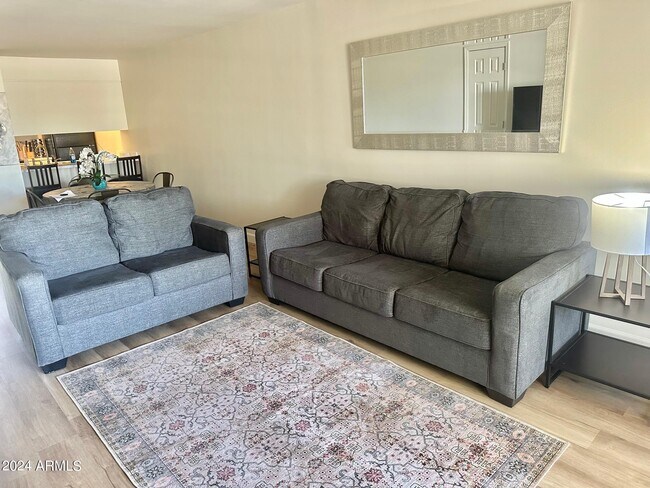 Fully furnished,two primary suites with large,sunny balcony and electric sunshade. Fitness facilities,resort style heated pool & spa,community center,bbq area and assigned covered parking. INCLUDES ALL UTILITIES except internet! Community laundry and elevator. Walking distance to Old Town Scottsdale,short drive to Phoenix Sky Harbor Airport,ASU,Scottsdale Community College or Culinary Arts Institute,and so much more. 12-24 month lease available.