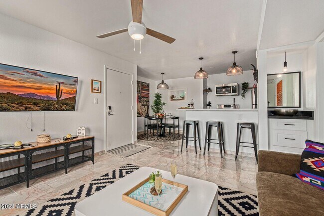 The rental rate listed is valid for monthly leases starting in Summer 2024. Please inquire for seasonal rates & terms. Featuring a covered balcony,a peaceful atmosphere on the second floor & two covered parking spaces,this condo delivers a tranquil experience that perfectly encapsulates the spirit of living in Old Town Scottsdale & is only minutes from the best restaurants,shopping,nightlife,spring training. Extensive upgrades have recently been made to this unit,as well as the exterior of the complex itself including a Heated Pool,Spa,Pickleball & Tennis Courts,Gym,Community Center. & BBQ Grills. The unit features a new AC unit,kitchen cabinets,countertops,sink,appliances,tile flooring throughout,large sliding door for natural light/indoor/outdoor living & large closets.
