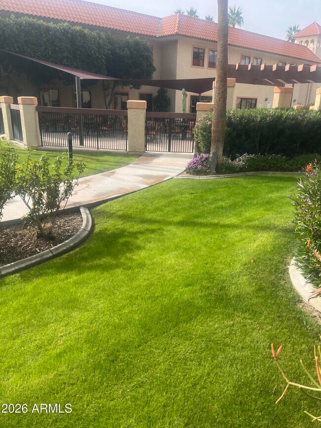 Tastfully updated 2 bedroom 2 bath condo at the El Dorado of Sun City. No carpeting,just lovely tile flooring throughout. Granite countertops & self closing cabinetry in open kitchen . Counter seating between kitchen/living space. Plantation shutters for privacy,Private & tiled patio off the living room. Great location! Do not miss this one! El Dorado offers meal plan,housekeeping,linen service,transportation,water,sewer,trash & more.