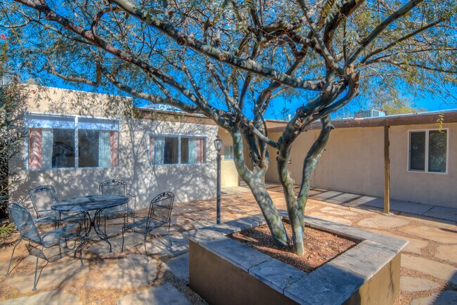 FULLY FURNISHED STUDIO! UTILITIES, INTERNET, & NETFLIX PAID! Fully furnished studio perfect for a single, or a couple! Great location near the foothills, recreation, shopping, and dining. Month-to-month lease. One-month deposit; 30-day notice. Non-smoking unit, no pets. All utilities and internet included. Access via smart lock, so no keys to lose! The studio is air conditioned, and features a full kitchen, queen bed, bathroom, and sitting area. The couches in the sitting area recline for comfortable TV viewing, or if you prefer to watch from bed, the TV is on a swivel mount. The windows all have blackout blinds. There is a private fully enclosed front porch, as well as a fully fenced, shaded, private patio behind. There is a shared courtyard, barbecue, patio table and chairs, and laundry room with a change machine. Please be respectful of other tenants. We also provide free WiFi and a smart TV. Netflix is already loaded up, but you’ll be able to access any of your streaming accounts. The house is on a septic system, so only human waste and toilet paper can be flushed. Designated parking for one car, trash and recycle service included. The house is located near two amazing parks, the Rio Vista Natural Resource Park and the Rillito River Park Trail, which is an amazing path for jogging, biking, and sight seeing. It's also known as "The Loop River Path" as it's part of a loop which goes around the entire city. It’s a little over 3 miles to U of A. You are also at the base of the foothills, so a quick drive up the hill to all the amazing shopping, hiking, and city views, while at the same time, you are 3 minutes from "Restaurant Row" on Campbell Ave., with every type of food you can imagine. It’s also on a bus path.