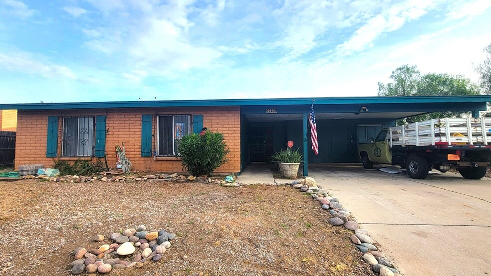 Freshly painted house inside and out. New fixtures in bathroom.3 bedroom, 2 full bath home in a centrally located, peaceful neighborhood. Great area for children and schools. This home features tile flooring in living areas, large Arizona room, a bright open floor plan, large walk in closet in master bedroom, laundry area includes washer and dryer, 2 car carport, a large backyard with desert area and bicycle riding trail behind house. Quick commute to downtown Tucson, U of A, and I-10! Dogs ok! , patio area covered. Great school district. Near parks (pool), shopping and dining. Attractive modern kitchen with all appliances. Two car carport with lots of cabinets for storage. Warm fireplace - perfect for relaxing. Enjoy Arizona outdoor living in your nice-sized fenced backyard with covered patio, ideal for year-round entertaining. This home provides ample living space, including a spacious living room, family room, and a lot of storage areas around home. Renter pays all utilities. One year lease that is renewable. Rental requirements and Pet policy is negotiable. No smoking inside home. Will be available on 1/01/26. Listed by owner - No additional or hidden fees like with management companies.