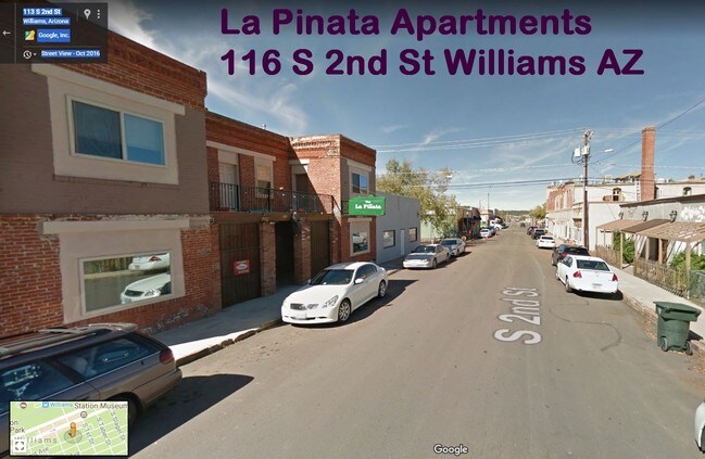 Modern 1 Bedroom 1 Bath Apartment in Historic Rte 66 Downtown Williams AZ Beautiful modern apartment in the Historic La Pinata Apartments. This historic building was reconstructed with loving care in 2013. Modern Forced Air gas heat, Ikea Cabinets, Gas Stove, Microwave and Tile baths all incorporated into a pleasing meld between gorgeous brick, modern conveniences and fantastic location. This building is 1/2 Block from the main interesection of Grand Canyon Blvd and Route 66. Close enough to participate in the activities downtown. Quiet enough to enjoy peaceful rest and relaxation. Off Street Parking available. Laundry On Site. Furnished Unit Owner Agent