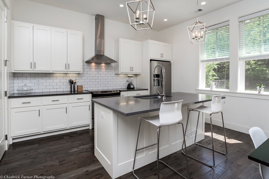 This modern house includes upscale finishes featuring an open floor plan with large windows, designer kitchen, quartz countertops, Nest thermostats, 2x6 walls, beautiful hardwood floors & tons of charm.