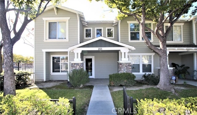 Two story corner unit townhome conveniently located in downtown Anaheim. Front yard with covered porch entry leads to an open concept living and dining area. A separate family room is adjacent to the kitchen. Fully upgraded kitchen with quartz counter top, four burner gas range, microwave exhaust hood, and convenient breakfast bar. The first level is covered with ceramic tile flooring for easy maintenance. The entire interior of the house has been freshly painted. Powder room and laundry area with new washer and dryer are on the first level. The stairs and second level have brand new luxury vinyl flooring. All three bedrooms are on the second level. Master bedroom has en suite bathroom. The second level hallway bathroom comes with shower/bathtub. Easy maintenance backyard with artificial turf and vinyl fencing. The 2 car garage has front and back garage doors, giving access to the house from the backyard. The house is equipped with tankless water heater. Walking distance to the Anaheim City Park. MLS# TR26022335