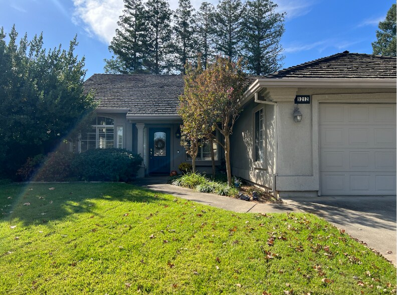 Formal living and dining with vaulted ceiling which provides abundant natural light! Separate living room with fireplace, kitchen nestled in between the formal living area and the living room which leads to the very private backyard. Huge master suite with large walk in closet and master bath, master bedroom has access to backyard. Laundry room leads into spacious two car garage with cabinetry. Excellent location being minutes away from Gibson Ranch park, entertainment, shopping, golf, with a walking path directly across street. Backyard is surrounded with grown trees which are encased in a built in river rock stone retaining wall. Perfect place to kick back relax and enjoy.